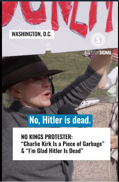 Lest you think I’m exaggerating, I’ll double down: There were actual recorded calls for murder from multiple homicidal Democrats at the No Kings rallies this weekend, not to mention those online.